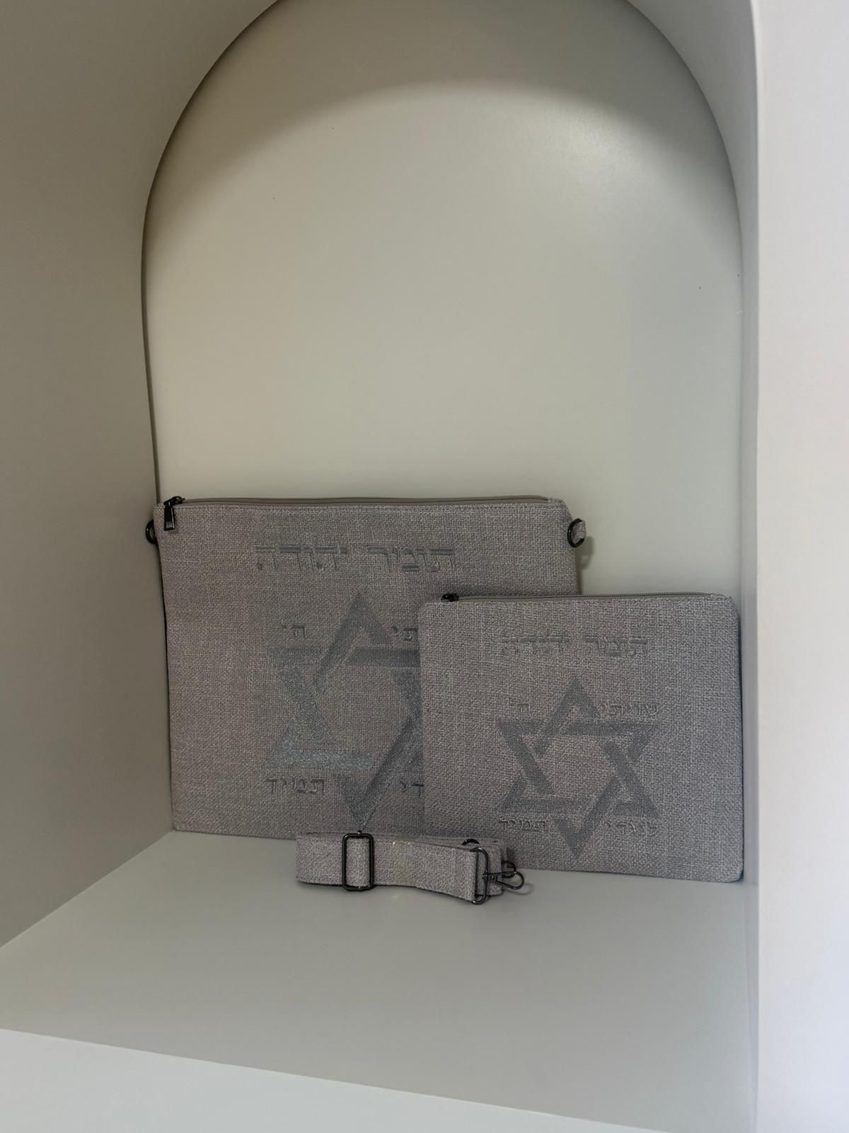 זוג נרתיקים מפשתן דגם מגן דוד בצבע כסוף